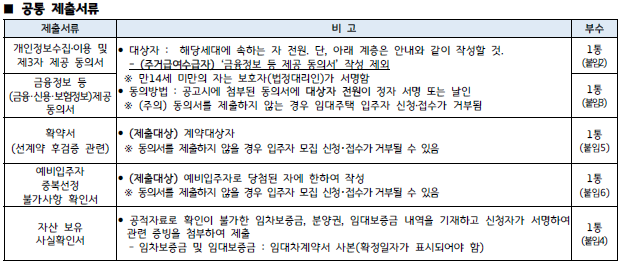 전자 계약 후 입주 자격 공통 서류 제출입니다.