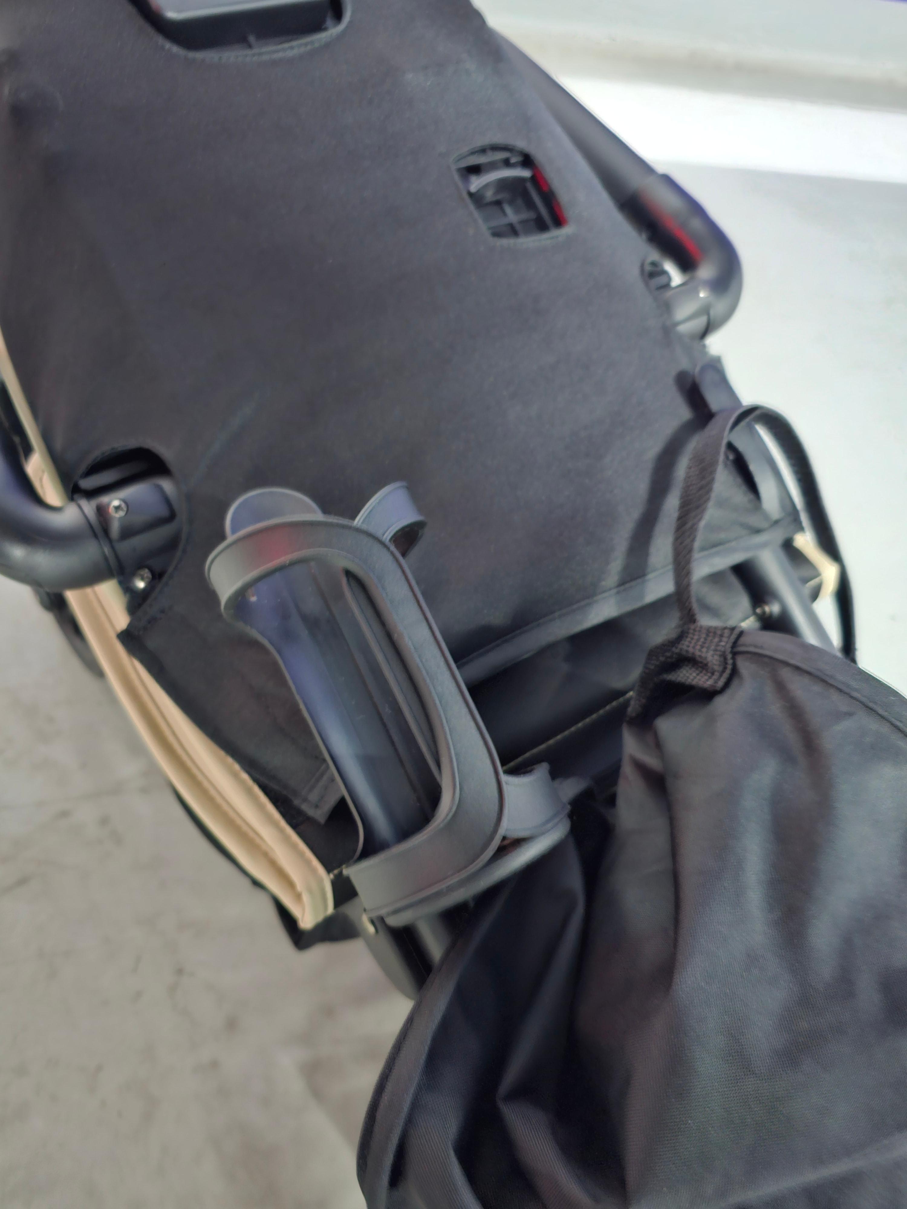 트라이크임에도 불구하고 수납 공간이 아주 넉넉해요. 하단 바구니뿐만 아니라 뒤쪽에도 수납 가방이 있어 기저귀나 물티슈 등을 넣고 다니기 정말 좋습니다.