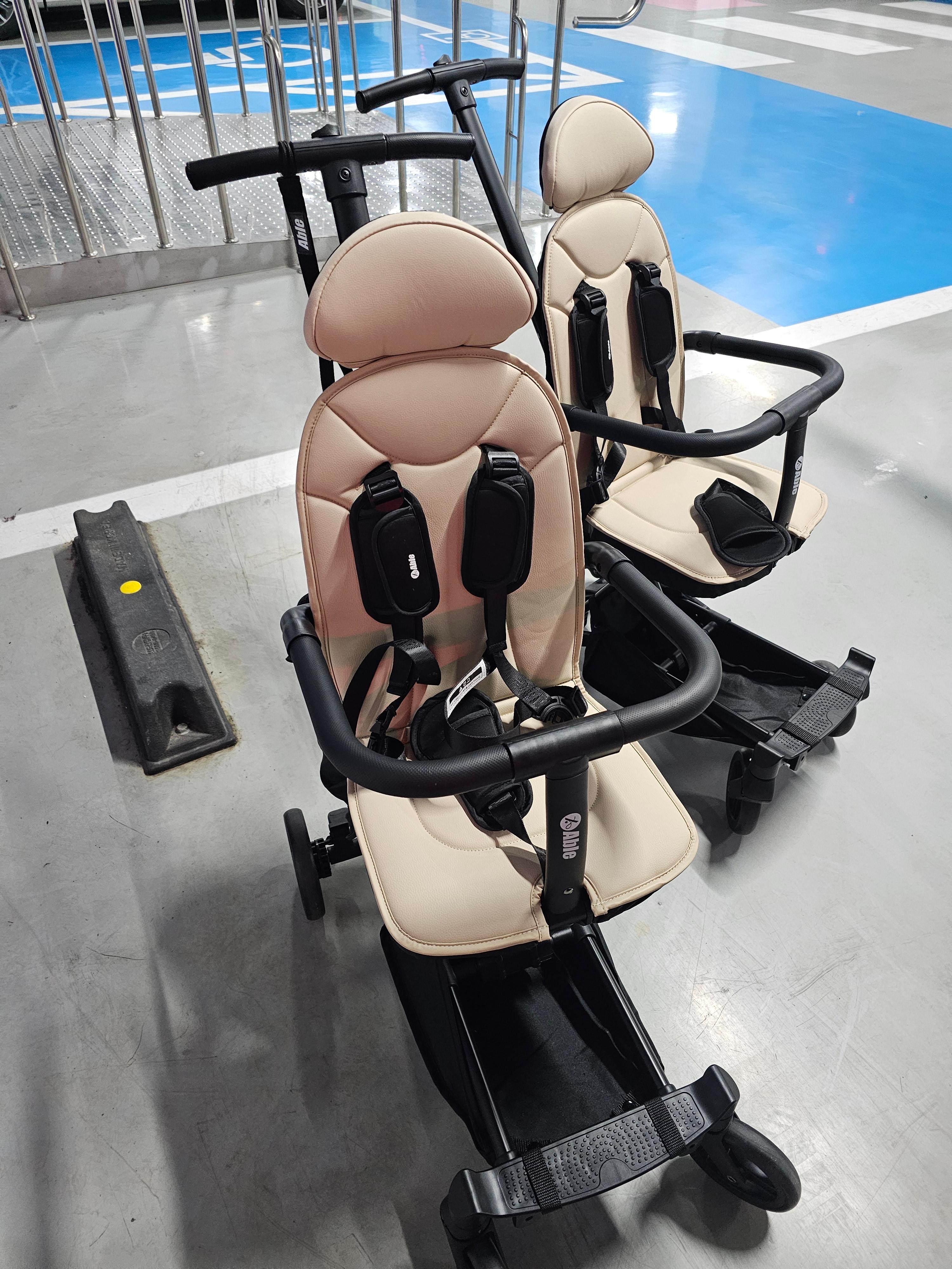 두 대를 나란히 세워두니 든든하죠? 휴대용유모차보다 훨씬 가벼우면서도 안정감은 놓치지 않았어요.