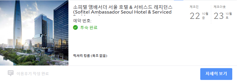 조식은 따로 신청하지 않고 객실만 예약하여 호캉스를 보냈습니다.