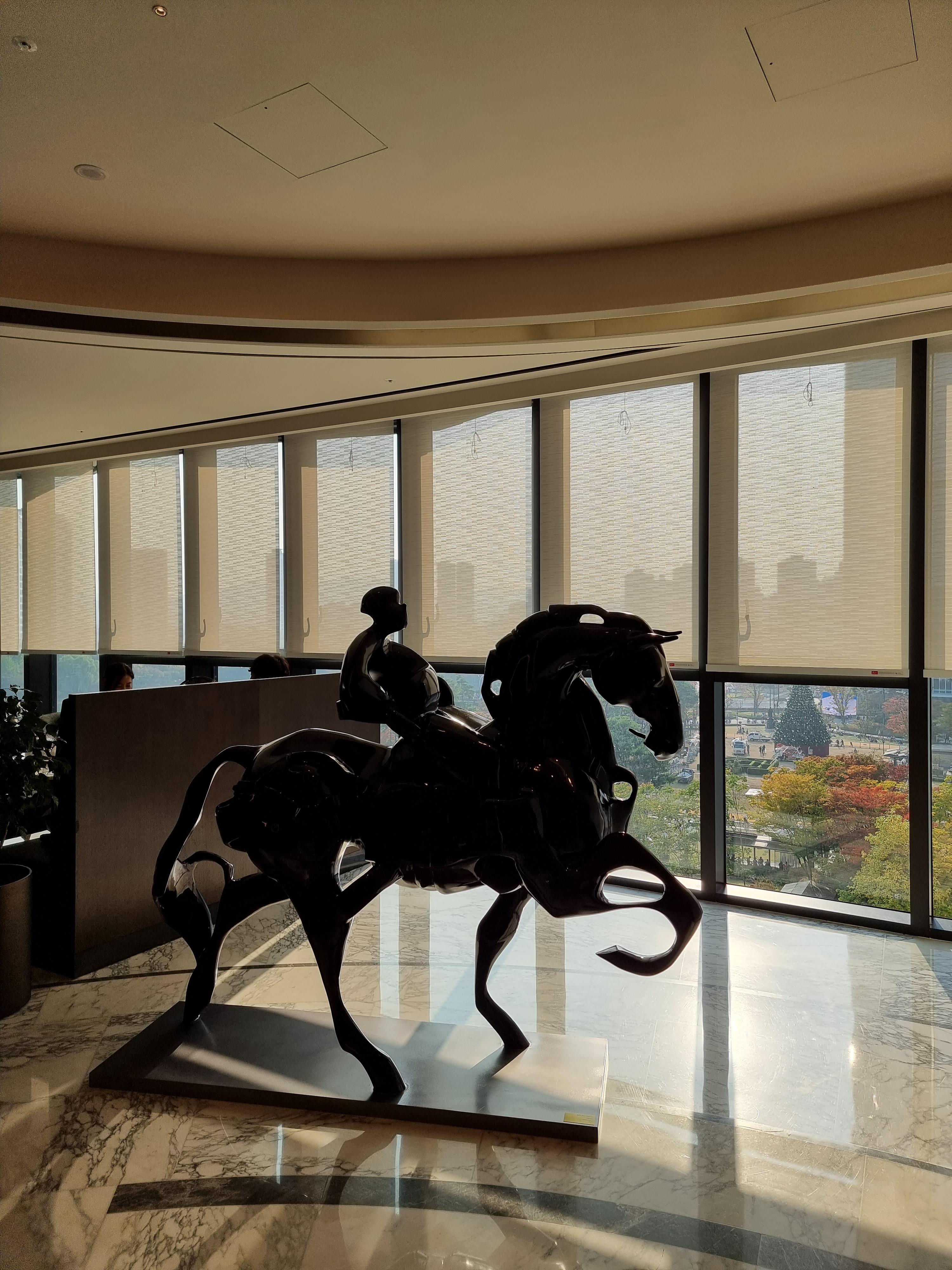 지하 주차장은 넓어서 간편히 주차하고 올라 올 수 있습니다. 로비층으로 오면 이렇게 조각상을 먼저 볼 수 있습니다.