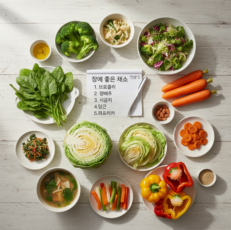 장에 좋은 채소 TOP 5와 섭취 팁 (장 건강 식단 가이드)